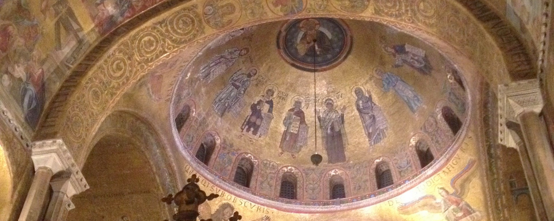 Ci addentriamo nel silente buio della Basilica di San Marco, camminando quasi a tentoni e facendo meno rumore possibile, per non svegliare le statue appisolate. Seduti sulle panche di fronte all’iconostasi, aspettiamo con trepidante pazienza l’aurora della chiesa: lentamente le luci fioche si accendono solo per noi e poi si fanno sempre più forti, fino ad un trionfo d’oro che ci avvolge in un abbraccio di luci e colori, per il quale rimaniamo senza parole, volgendo i nostri occhi ai soffitti aurei.