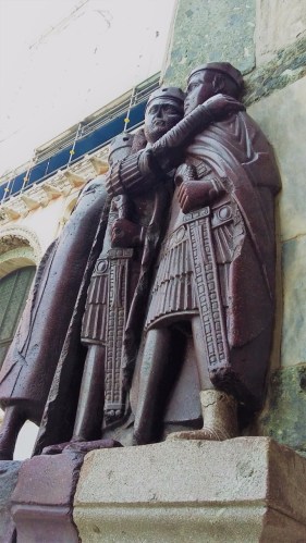 Since the hypothesis of the tetrarchy was guessed only recently, Venetians still use to call my men “the four thieves” (I Quattro Ladroni), because the legend says that four Moor men attempted to steal S. Marco’s treasure: they were caught, stuck with lightning and petrified instantly by the Saint himself! (I would like you to notice that feet are the crucial element in escaping. The missing foot might have been a problem for them). The statues, by the way, are leaning exactly on the chapel storing S.Marco’s Treasure. Now the emperors are a warning to thieves. And if I were a thief, I would think it twice to try and steal in S. Marco’s church. Their eyes really are disquieting. I haven’t got used to them yet. Some even say that these statues stopped a thief from robbing because he stumbled on them when they arrived in Venice: an oxymoron, considering that they were robbed of their decorations and they were stolen from their original place. Still, stolen statues are protecting something from theft.