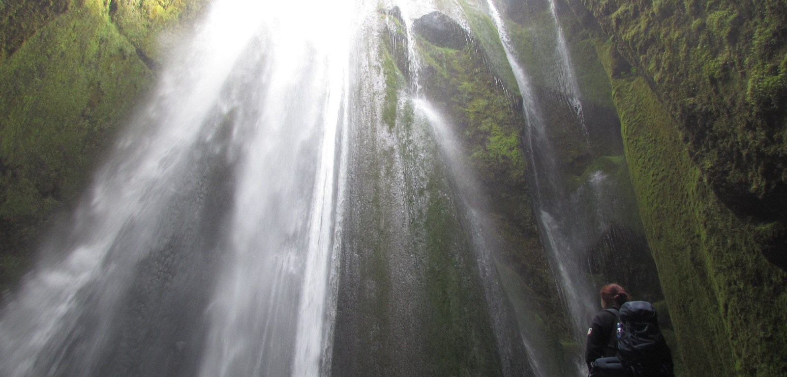 Dopo Seljalandfoss, ci spostiamo a piedi verso la cascata preferita di Inka: Gljúfurárfoss. questo getto d’acqua si lancia da 40 metri per cadere scroscianti all’interno di una grotta naturale; per vederla bisogna entrare nella grotta, attraversando un fiumiciattolo. “Questa è la mia cascata” ci dice Inka con orgoglio: l’ha scoperta durante il suo primo viaggio in Islanda, cinque anni fa, quando il turismo era un quarto di adesso e per Gljúfurárfoss non c’era neanche mezzo segnale. L’ha trovata per caso, e ci è rimasta un’ora da sola senza che nessuno venisse a rovinare il momento. Adesso c’è un cartello a segnalare l’ingresso nella grotta: non è affollata come Seljalandfoss, ma passarci un’ora da soli sembra decisamente impossibile, almeno nelle ore di punta. Continuiamo a camminare, costeggiando la Ring Road: dopo poco incontriamo un sentierino poco segnalato che va verso le montagne sopra le cascate. Lo prendiamo, curiose: attraversiamo campi e fiumiciattoli, incontriamo i bellissimi cavalli islandesi, saliamo per sentierini quasi verticali, finché… Sorpresa! Siamo esattamente sopra Gljúfurárfoss. Il getto d’acqua è accanto a noi, e lo ammiriamo dall’altro mentre si lancia nella grotta. Volendo, potremmo sputare in testa ai turisti, ma ci limitiamo ad osservarli senza essere viste (forse un pezzo del mio cappello comparirà in qualche foto scattata inconsapevolmente da sotto). Inka è felicissima: ha riconquistato la sua cascata, alla faccia del turismo di massa.