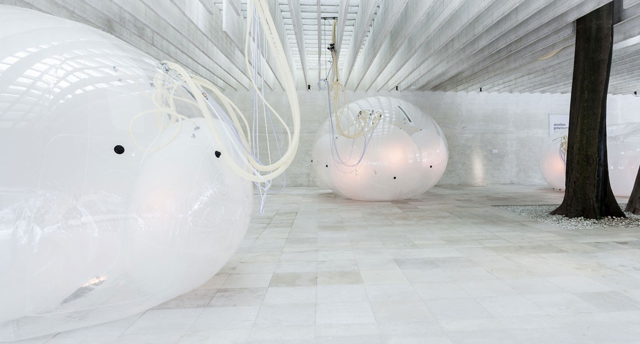 The pavilion which expresses with striking significance the exchange between man and environment is that of the Nordic Countries (Finland, Norway and Sweden), entitled Another generosity, curated by Eero Lundén and Juulia Kauste. The exhibition consists in a room filled with giant inflatable cell-shaped structures, each of which is made of a membrane containing two basic natural elements: air and water. All the structures are provided with sensors and electric tools aimed at monitoring external carbon-dioxide, humidity and temperature levels and at generating a response by contracting and expanding the balloons. Thanks to such a response to external stimuli, a dynamic space is thus created consistent with the relationship between the visitors and the exhibition, aiming at rising questions and a new awareness toward the complex relationship between natural environment and built environment (architecture itself).