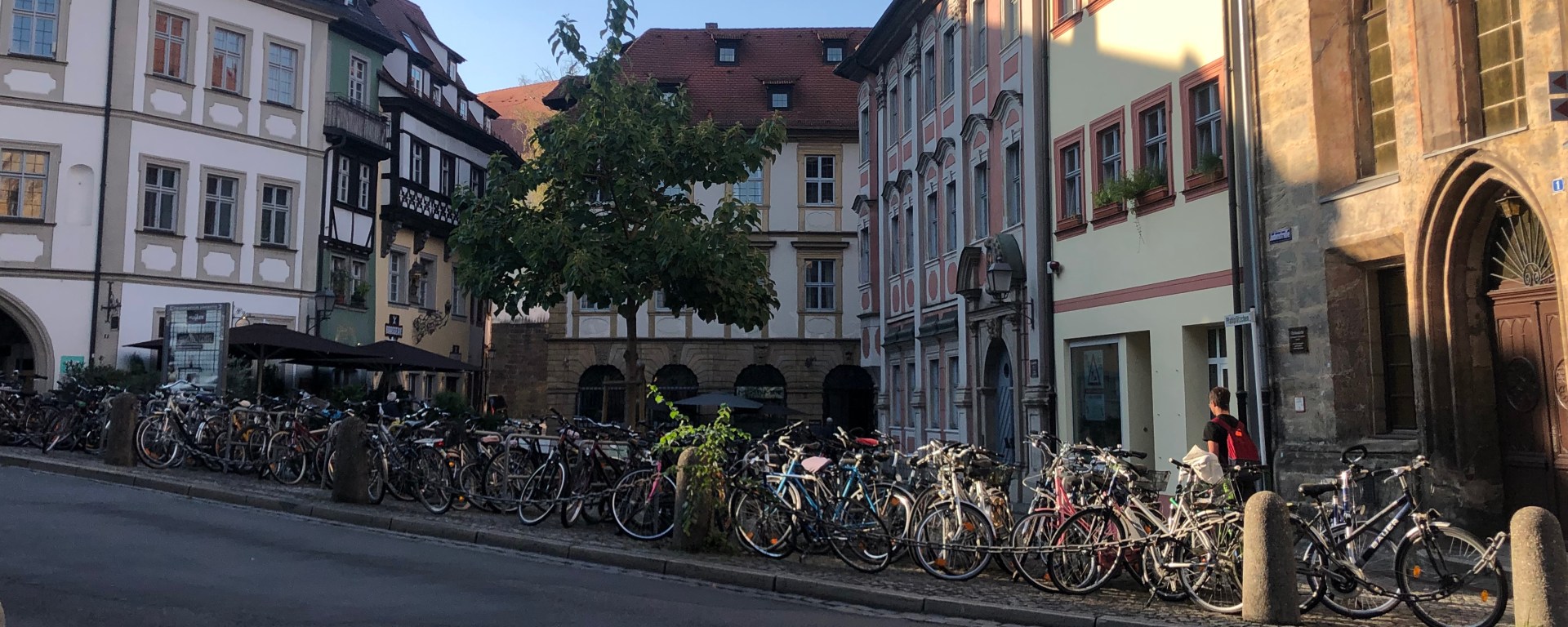 Il mezzo di circolazione più pericoloso del mondo, scoprirete visitando Bamberga, è la bicicletta. Forse dovrei specificare che quasi tutti (sottolineo: quasi tutti) a Bamberga possiedono almeno una bicicletta. La città è tappezzata di piste ciclabili, per cui agli incroci c’è una striscia di stop apposita, un secondo semaforo dedicato e corsie specifiche per la svolta, e la città è collegata con i paesi vicini attraverso percorsi ciclabili immersi nella campagna circostante. Ci sono parcheggi per le biciclette in tutte le sedi dell’università, per strada, in piazza, lungo le vie principali del centro a intervalli più o meno regolari, e, dove non ve ne sono, ce li si crea. Date le dimensioni di Bamberga, la bici è sicuramente il mezzo di spostamento più sensato, perché può passare nelle zone a traffico limitato, per le viuzze del centro, beh, ovunque.