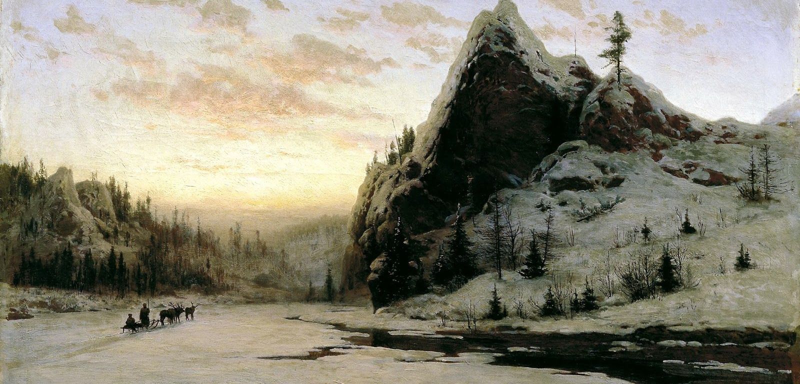 Between the woods and frozen lake