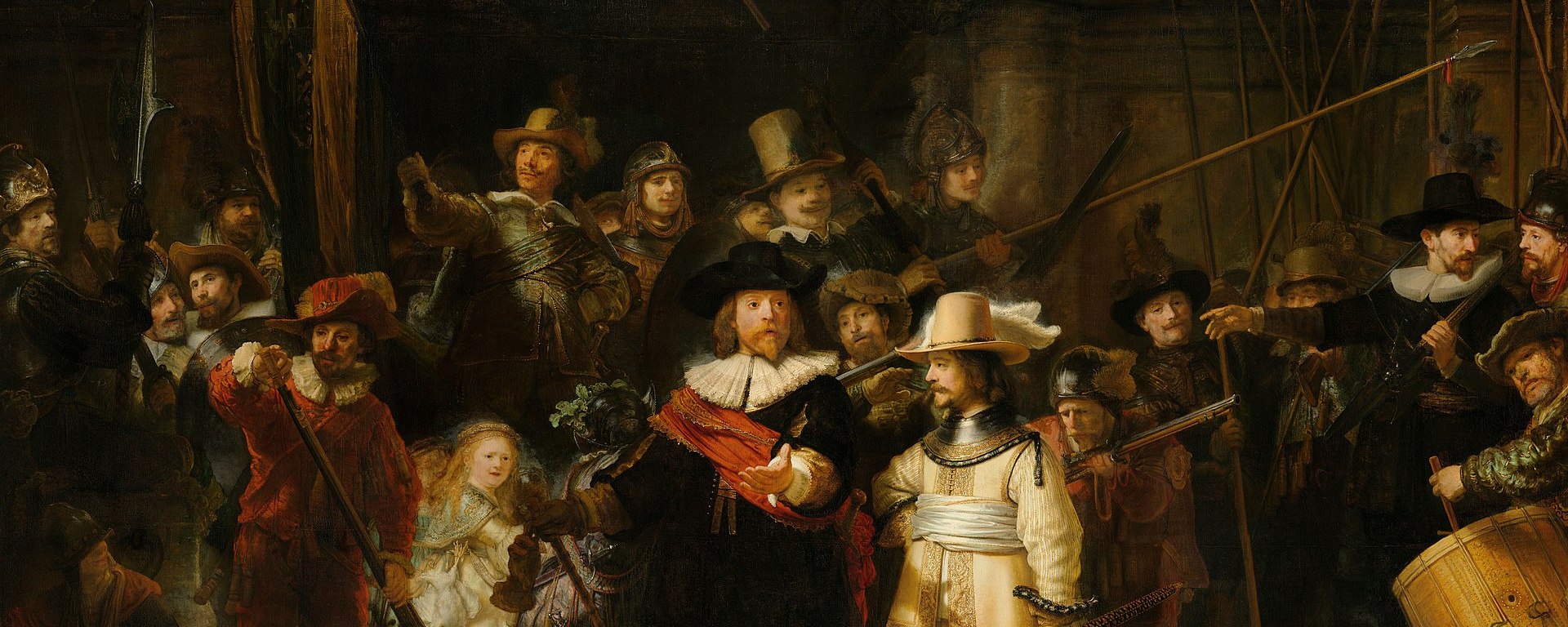 È una luce da interni ma che paradossalmente viene riflessa, raccontata nei dipinti anche all’esterno: non c’è nessuna freddezza nelle pitture, anche i pattinatori di Avercamp pur nel bel mezzo di un inverno ghiacciato si muovono in una luce calda, accogliente. È la luce dei Mangiatori di patate, è la luce della Ronda di notte. Piccole luci domestiche e calde che spingono fuori quel chiarore sinistro che si intravede dall’esterno. In Olanda è sempre grigio, ma le luci gialle riempiono le città appena fa buio: non solo illuminazione pubblica, ma anche privata, perché le case olandesi tipiche hanno grandi finestre senza tende, e le luci delle case si vedono dalle strade.